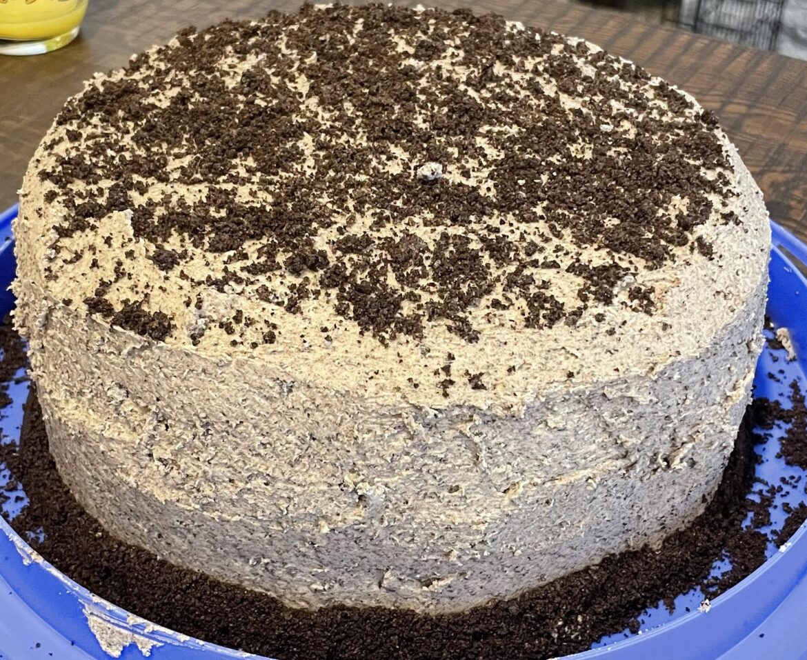 Cake Baking…it’s a beast…particularly, layered cakes! I find recipes with pictures of these flawless, beautiful cakes and they always claim, “easy”, “foolproof”, “simple”, etc. Lies, all lies! A layered cake is not for the faint of heart! It’s a challenge and one that I have been attempting to tackle! I am determined to master this thing! So far I have attempted a layered yellow vanilla cake with a chocolate buttercream frosting, a layered dark chocolate cake with a peanut butter buttercream frosting, and a layered chocolate cake with an Oreo buttercream frosting. Side note, it’s “frosting” if it’s thicker, fat-based, and holds its shape when spread. Icing is generally thinner, liquid-like, doesn’t hold its shape and its main ingredient is powdered sugar mixed with a liquid. Anyway, that little tidbit was free! All of the cakes were moist and tasted great, there wasn’t a single crumb to be wasted!